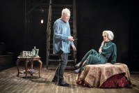 Nicholas Farrell, as Sir William, is a charming old buffer with a walking stick who seems to have hobbled in from the wrong era. His wing collar, goatee beard and black Homburg make him look like an imitator of Edward VII and his obvious frailty reduces his attractiveness to Hester. A sprightly and virile Sir William would make him a more credible rival for the dynamic Freddie. Selina Cadell plays the gossipy, eavesdropping Mrs Elton without overdoing it. Tamsin Greig, as always, seems to be performing a role that was written with her in mind. A faultless turn. Finbar Lynch gets a big laugh as soon as he enters as Mr Miller, the riddling healer with a criminal past. That laugh spells danger. Lynch could easily turn his part into a crowd-pleasing cameo and tilt the show in his direction. But he refuses to take that option. He shines as the moral conscience of the piece who advises Hester to choose pain rather than death. Subtly and unobtrusively, he makes the production his own. But he doesn’t steal it.