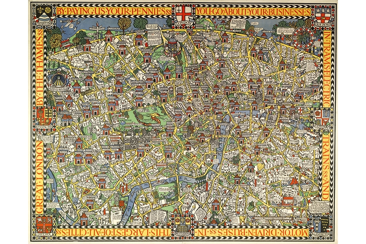 ‘Wonderground’ is seasoned whimsy. It is a late expression of merrie Imperial pleasantness, but it is also exceptional draughtsmanship: a synoptic marvel. Like Giambattista Nolli, whose Rome map of 1748 is the gold standard of imagined aerial views, Gill had perhaps never been in an aeroplane. But the London territory he surveyed was internal, not aerial: folkloric and a mite too cute for our taste. With perspective, ‘humourous’ has a deadly ring.