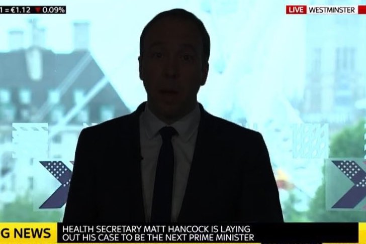 Unfortunately, it appears that while Hancock’s speech looked impressive in the room, the lighting didn’t quite work on live TV, leading to Hancock looking more like a shadow than a cabinet minister: