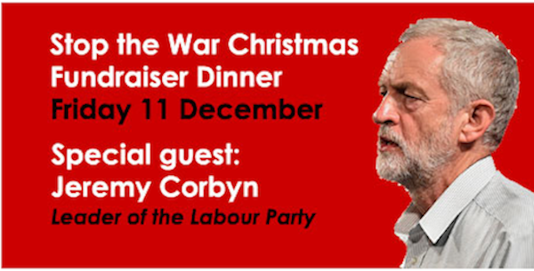 Although Jeremy Corbyn is facing growing criticism over his role as a speaker at Friday’s Stop The War Christmas fundraiser, so far the Labour leader is showing no signs of backing down. Despite pleas from the likes of Michael Dugher, Tristram Hunt, Caroline Flint and Emma Reynolds for Corbyn to cancel, he looks set to attend, and will give the main speech.
