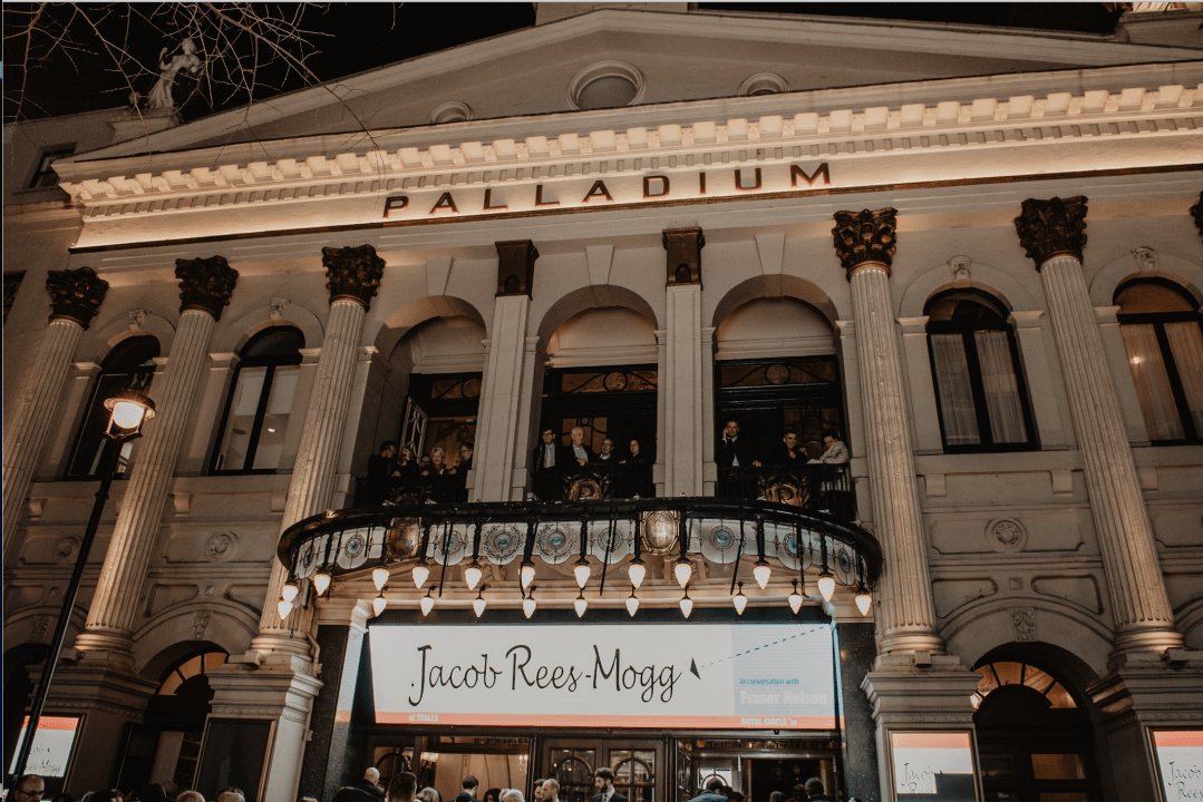 A woman dressed as a nun is standing outside the London Palladium with a placard, warning about ‘an evening with a religious extremist’. She refers to Jacob Rees-Mogg, who sold all 2,300 seats at the venue in a fortnight — a feat that enraged his critics all the more.