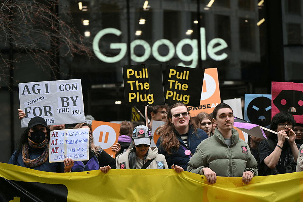 A senior lecturer in digital economy spoke about plummeting attention spans and our inability to concentrate on anything for more than five seconds. Her talk was so boring that everyone began chatting among themselves. The march continued. As we trudged through a parade of shops, the 19-year-old began a chant: ‘If they build Big AI, every one of us will die.’ This refrain was echoed enthusiastically by the marchers.