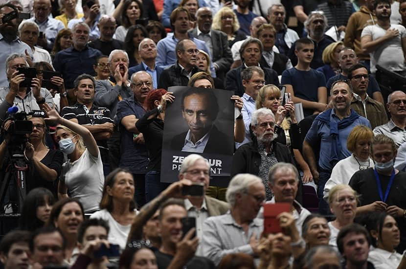 Zemmour is ready to confront taboo subjects. In his speech on Saturday, he insisted that immigrants assimilate or get out. He attacked the obsessive focus on racism and colonialism in the media, government, schools, universities and cultural institutions, saying it has undermined families, the relations between men and women, and religion. He called the state broadcasters ‘organs of propaganda’. He called for Christian, Jewish and Muslim families to unite at the damage being done to schools by imported anti-meritocratic American ideologies such as critical race theory.