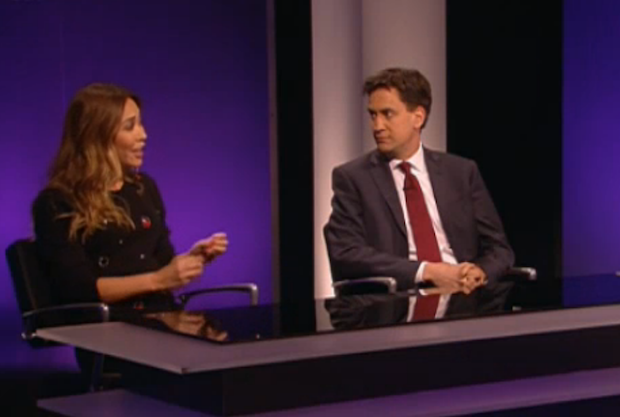 Myleene Klass had a bit of a go at Ed Miliband last night when she appeared next to the Labour leader on The Agenda. She was very cross about what she described as a ‘sexy tax that says let’s take from the rich and give it to the poor’, which is of course Labour’s mansion tax.