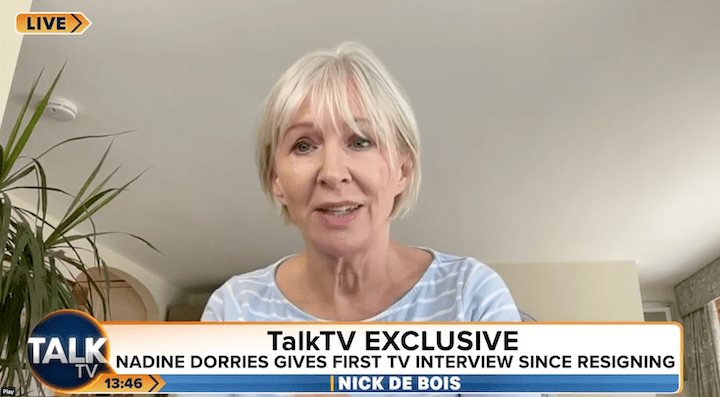 Dorries appeared on TalkTV this afternoon to explain why she felt she had to resign now, and to take another pop at the Prime Minister for good measure.