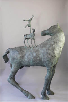 This exhibition is fantastic in an exact sense. Its centrepiece is ‘Ladder’, in which three mythical beasts, like a circus act from a Greek fable, form a shaky pyramid, balancing precariously on a ladder. In other bronzes, svelte ballerinas glide within the confines of an almost perfect circle.
