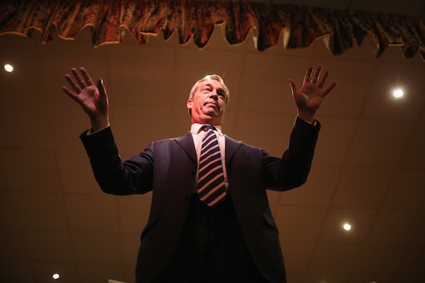 On Tuesday he told me that he now favoured a two band system, with one set at 40p, because ‘that is seen to be fairer. Whether that’s right or not, I think it’s seen to be fairer’.  What strikes me as significant about this is that Farage is conceding that he’s changing the policy for appearances’ sake. He went on to say ‘you don’t want to have policies that distract from your main objectives in life’.