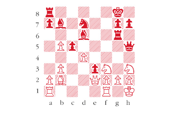 Black to play. This position is from Sjoholm-Spielmann, Kalmar 1941. How did Black swiftly decimate the white kingside? Answers to me at The Spectator by Tuesday 5 March or via email to victoria@spectator.co.uk or by fax on 020 7681 3773. The winner will be the first correct answer out of a hat, and each week I shall be offering a prize of £20. Please include a postal address and allow six weeks for prize delivery.