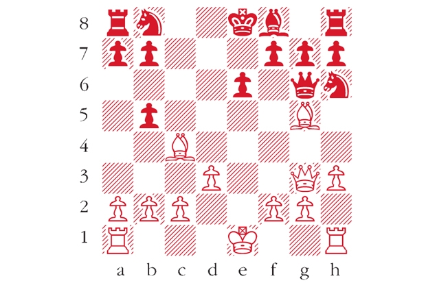 White to play. This position is from Teichmann-NN, Simultaneous Display, Berlin 1914. Can you spot White’s fine finish? Answers to me at The Spectator by Tuesday 18 March or via email to -victoria@spectator.co.uk or by fax on 020 7681 3773. The winner will be the first correct answer out of a hat, and each week I shall be offering a prize of £20. Please include a postal address and allow six weeks for prize delivery.