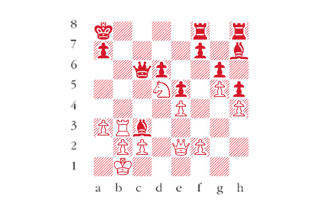 White to play. This position is from Rogers-Milos, Manila Olympiad 1992. White is a mass of material down but the black forces on the kingside are irrelevant. Can you spot the brilliant finish?