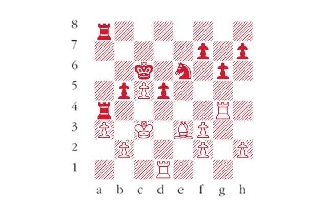 Black to play. This position is from Ivanchuk-Mamedyarov, Tromsø Olympiad 2014. How did Black win material? Answers to me at The Spectator by Tuesday 26 August or via email to victoria@spectator.co.uk or by fax on 020 7681 3773. The winner will be the first correct answer out of a hat, and each week I shall be offering a prize of £20. Please include a postal address and allow six weeks for prize delivery.