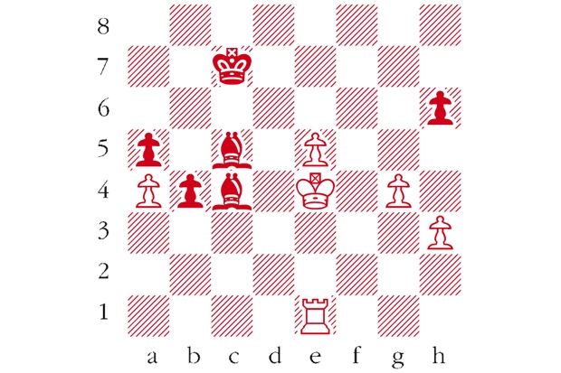 White to play. This position is a variation from move 37 of today’s game. How does White win? Answers to me at The Spectator by Tuesday 2 December or via email to victoria@spectator.co.uk or by fax on 020 7681 3773. The winner will be the first correct answer out of a hat, and each week I am offering a prize of £20. Please include a postal address and allow six weeks for prize delivery.