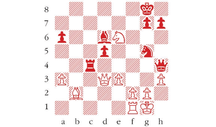 Black to play. This is from Cochrane-Staunton, London 1842. How did Staunton exploit his menacing build up of pieces on the kingside? Answers to me at The Spectator by Tuesday 14 April or via email to victoria@spectator.co.uk or by fax on 020 7681 3773. The winner will be the first correct answer out of a hat, and each week I am offering a prize of £20. Please include a postal address and allow six weeks for prize delivery.