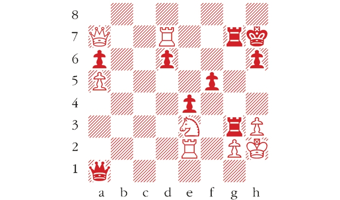 Black to play. This is from Williams-Hawkins, -British Championship 2014. How can Black finish off his attack with a fine flourish? Answers to me at The Spectator by Tuesday 28 July or via email to victoria@spectator.co.uk or by fax on 020 7681 3773. The winner will be the first correct answer out of a hat, and each week there is a prize of £20. Please include a postal address and allow six weeks for prize delivery.