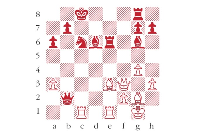 White to play. This is from Palucha-Skettos, Bhubaneswar 2016. Here White destroyed the black position with a typical tactical thrust. Can you see it? Answers to me at The Spectator by Tuesday 6 September or via email to victoria@spectator.co.uk. There is a prize of £20 for the first correct answer out of a hat. Please include a postal address and allow six weeks for prize delivery.