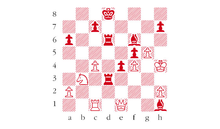 Black to play. This position is a variation from Gelfand-Mamedyarov, Tal Memorial Blitz 2016. Black has various strong moves but only one forces checkmate. Can you see it? Answers to me at The Spectator by Tuesday 4 October or via email to victoria@spectator.co.uk. There is a prize of £20 for the first correct answer out of a hat. Please include a postal address and allow six weeks for prize delivery.