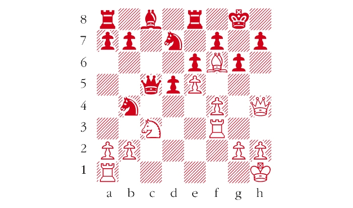 White to play. This position is a variation from Portisch-Petrosian, Moscow 1967. Can you spot White’s winning coup? Answers to me at The Spectator by Tuesday 11 April or via email to victoria@-spectator.co.uk. There is a prize of £20 for the first correct answer out of a hat. Please include a postal address and allow six weeks for prize delivery.