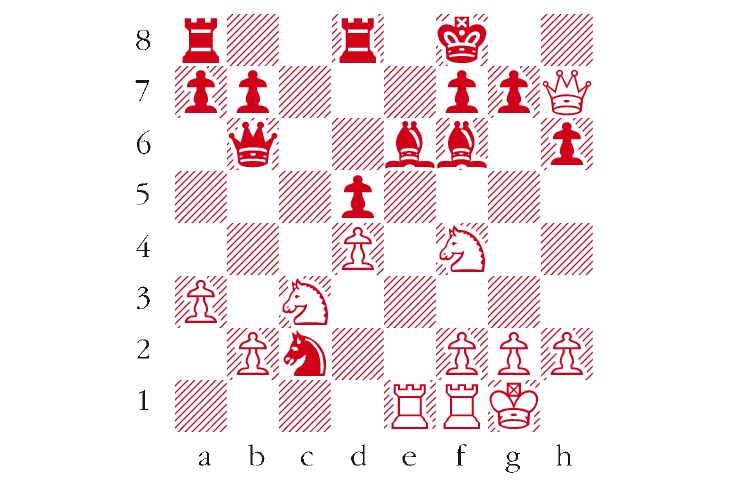 White to play. This is from Euwe-Fischer, New York 1957. How did Euwe capitalise on the threatening position of his queen? Answers to me at The Spectator by Tuesday 23 May or via email to victoria@spectator.co.uk. There is a prize of £20 for the first correct answer out of a hat. Please include a postal address and allow six weeks for prize delivery.