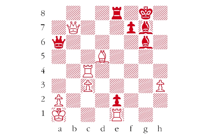 Black to play. This position is from Arnason-Keene, London 1981. This position also arose from a Modern Defence. How did Black finish off? Answers to me at The Spectator by Tuesday 30 May or via email to victoria@spectator.co.uk. There is a prize of £20 for the first correct answer out of a hat. Please include a postal address and allow six weeks for prize delivery.