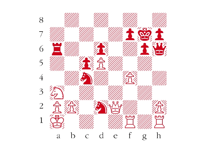 Black to play. This position is from Mecking-Basman, Hastings 1966. How did Black make the most of his active knights? Answers to me at The Spectator by Tuesday 6 June or via email to victoria@spectator.co.uk. There is a prize of £20 for the first correct answer out of a hat. Please include a postal address and allow six weeks for prize delivery.