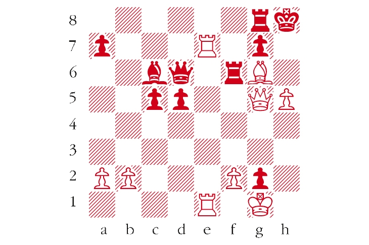 White to play. This position is from McShane-Istratescu, London 2013. How did White conclude his kingside attack with a fine flourish? Answers to me at The Spectator by Tuesday 1 August or via email to victoria@spectator.co.uk. There is a prize of £20 for the first correct answer out of a hat. Please include a postal address and allow six weeks for prize delivery.