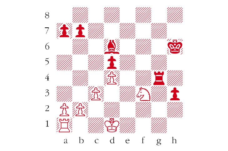 Black to play. This position is from Carlsen-Bu, Fidé World Cup, Tbilisi 2017. Can you spot Black’s winning coup? Answers to me at The Spectator by Tuesday 19 September or via email to victoria@spectator.co.uk. There is a prize of £20 for the first correct answer out of a hat. Please include a postal address and allow six weeks for prize delivery.