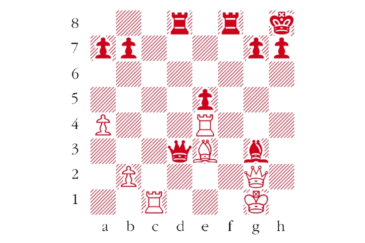 Black to play. This is from Sanal-Arnaudov, Antalya 2017. How did Black finish off the horribly exposed white king? Answers to me at The Spectator by Tuesday 24 October or via email to victoria@spectator.co.uk. There is a prize of £20 for the first correct answer out of a hat. Please include a postal address and allow six weeks for prize delivery.