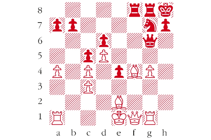 Black to play. This position is a variation from Keymer-Carlsen, Grenke 2019. Black is a piece down. What is the only move to stay in the game? Answers to me at The Spectator by Tuesday 7 May or via email to victoria@spectator.co.uk. There is a prize of £20 for the first correct answer out of a hat. Please include a postal address and allow six weeks for prize delivery.