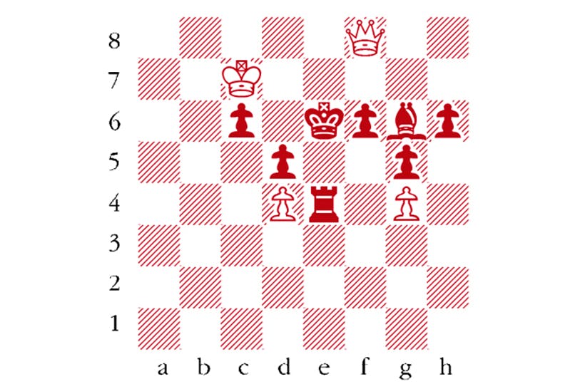 Sanguineti–Najdorf, Mar del Plata 1956. White to move. White played 1 Kd8?, to threaten 2 Qe7#. Black resigned, overlooking 1…Rxg4 to prepare Ke6-f5. White should have chosen a queen check instead. Which one? Answers by Tuesday 21 January to ‘Chess’ at The Spectator or victoria@-spectator.co.uk. There is a prize of £20 for the first correct answer out of a hat. Please include a postal address and allow six weeks for prize delivery.