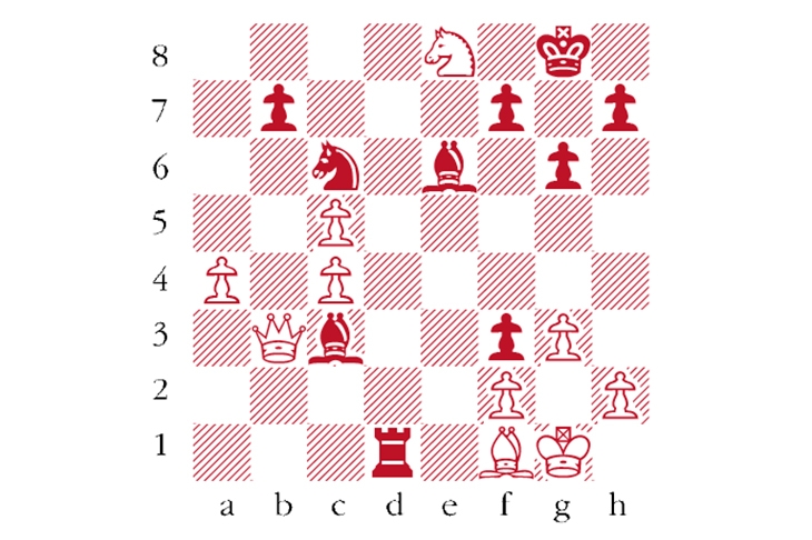 Black to play. Puranik–Sjugirov, another spectacular game played at the Aeroflot Open. Puranik was perhaps counting on 1…Rc1 2 Qa3 Bd2 3 Qb2! threatening mate on g7. Sjugirov found a much more powerful move. What was it? Answers to ‘Chess’ at The Spectator by Tuesday 10 March or via email to victoria@-spectator.co.uk. There is a prize of £20 for the first correct answer out of a hat. Please include a postal address.