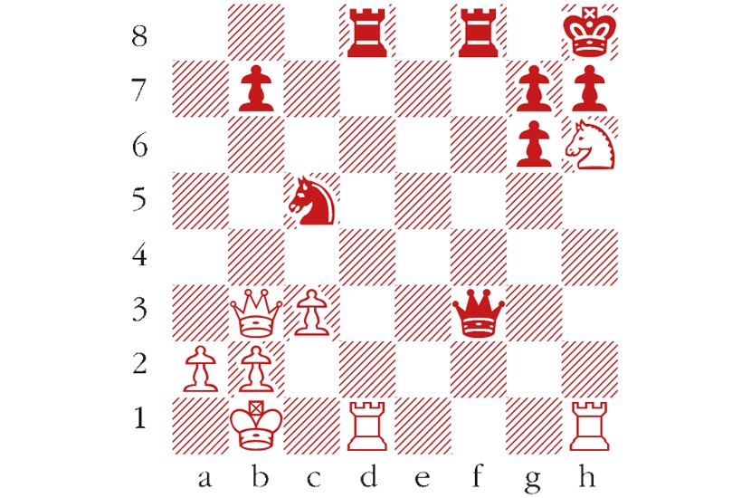 White to play. From the ridiculous to the sublime. According to the ‘Chess Notes’ website, a game won by Edward Gestesi in Paris, 1911. Which move forces a quick checkmate? Answers should be emailed to chess@spectator.co.uk by Monday 6 July. There is a prize of £20 for the first correct answer out of a hat. Please include a postal address and allow six weeks for prize delivery.