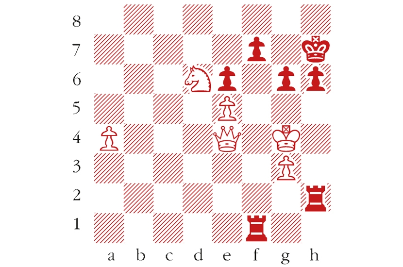 Black to play. Rios–Adams, Online Olympiad, August 2020. The White king is running short of squares. Which move did Adams play to tighten the noose? Answers should be emailed to chess@spectator.co.uk by Monday 14 September. There is a prize of £20 for the first correct answer out of a hat. Please include a postal address and allow six weeks for prize delivery.