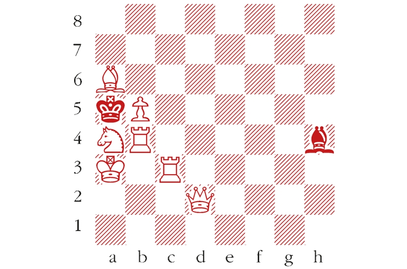 White to play and mate in two moves. Composed by B.P. Barnes, Skakbladet 1961. Answers should be emailed to chess@spectator.co.uk by Monday 5 April. There is a prize of £20 for the first correct answer out of a hat. Please include a postal address and allow six weeks for prize delivery.