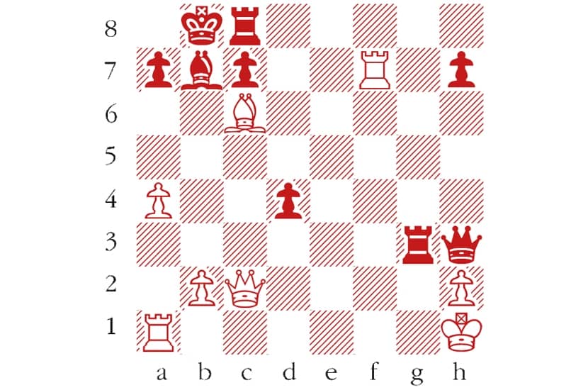 Black to play. J. Polgar — Gaprindashvili, Novi Sad Olympiad 1990. Gaprindashvili’s next move prompted immediate resignation. What did she play? Email answers to chess@spectator.co.uk by 27 September. There is a prize of £20 for the first correct answer out of a hat. Please include a postal address and allow six weeks for prize delivery.