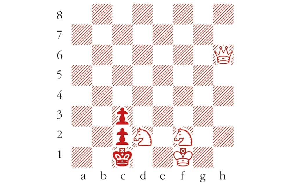 White to play and mate in two moves. Composed by Carl Schlechter, Allgemeine Sport-Zeitung, 1908. What is White’s first move? Answers should be emailed to chess@spectator.co.uk by Monday 26 September. There is a prize of £20 for the first correct answer out of a hat. Please include a postal address and allow six weeks for prize delivery.