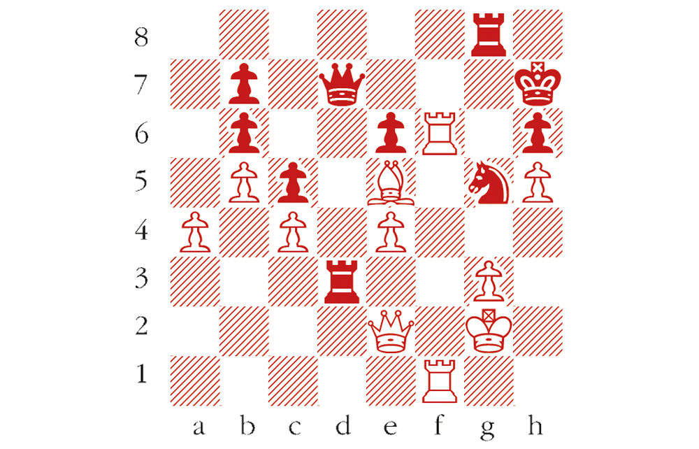 White to play. Sindarov-Sarin, World Team Championship, Jerusalem 2022. Sindarov has an extra pawn and a dominant position. Which move did he play to ensure a quick knockout? Answers should be emailed to chess@spectator.co.uk by Monday 5 December. There is a prize of £20 for the first correct answer out of a hat. Please include a postal address.