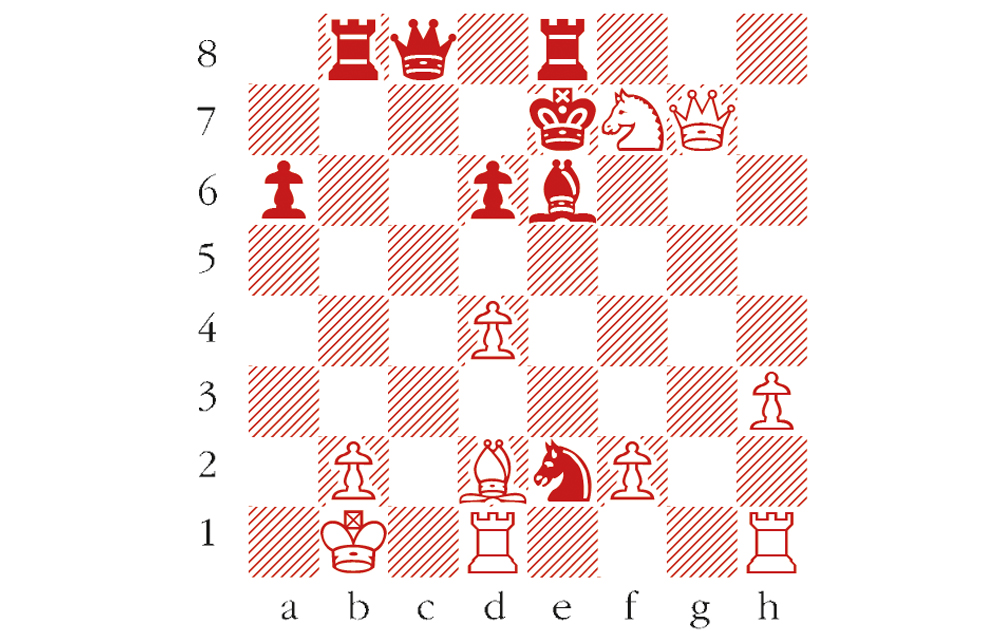 Black to play. Babula-Kovacevic, Bundesliga 2022. Black faces a fierce attack, but an extraordinary move won him the game. What did he play? Answers should be emailed to chess@spectator.co.uk by Monday 2 January. There is a prize of £20 for the first correct answer out of a hat. Please include a postal address and allow six weeks for prize delivery.