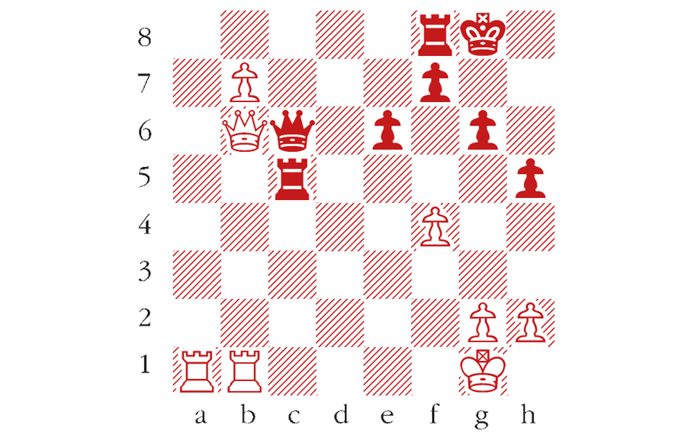 Black to play. Adorjan-Lobron, the Master Game Final, London 1982. White’s far advanced b-pawn looks likely to win the game, but Lobron’s next move turned the tables. What did he play? Answers should be emailed to chess@spectator.co.uk by Monday 6 May. There is a prize of £20 for the first correct answer out of a hat. Please include a postal address and allow six weeks for prize delivery.