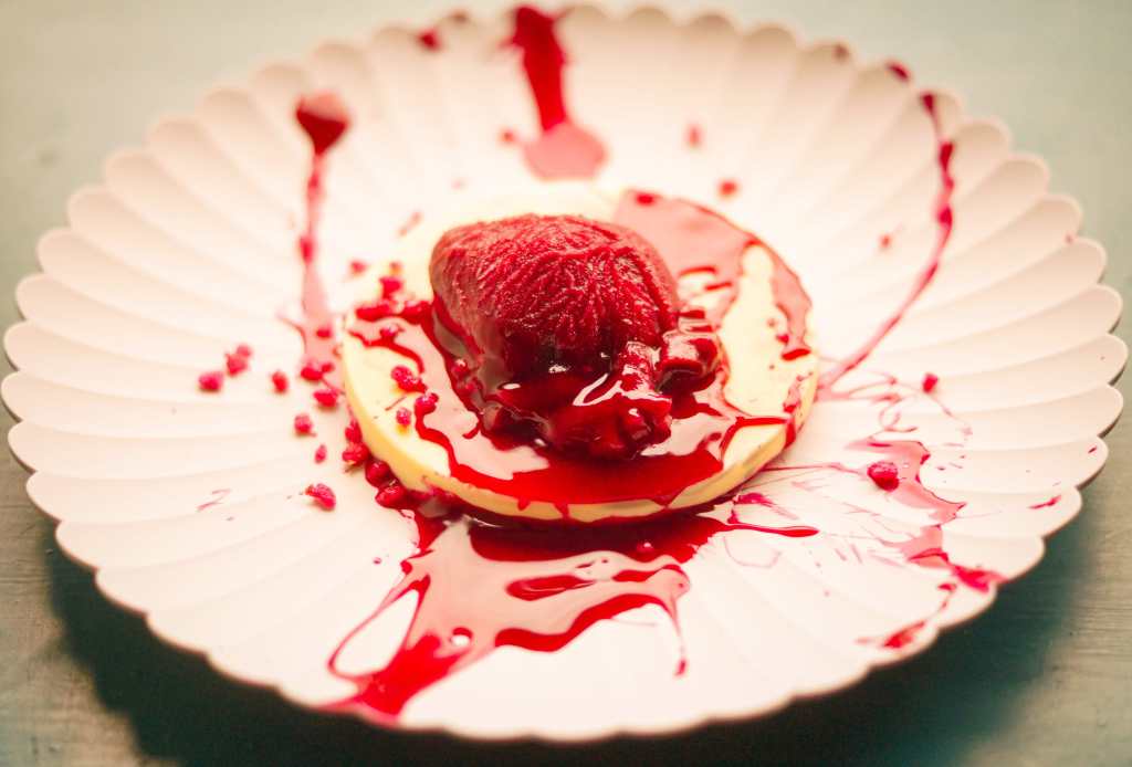 The exceptions are the puddings, which are intended to do both. One – ‘The Beet’n Heart’ – appears around each Valentine’s Day like a romantic medical emergency. A heart (coronaries and aortic trunk all present) is presented on its own slab. The heart was once raspberries, the slab is white chocolate and chocolate mousse, and the whole creation is splattered scarlet with sweet beetroot blood. What looks like evidence from a fatal crime tastes like heaven with a sense of humour.