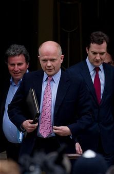 William Hague has just emerged from the Cabinet Office and spoken of the ‘positive, constructive and substantive talks’ between the Conservatives and the Liberal Democrats. Discussion has encompassed political reform, reducing the deficit, banking reform, regulation of small businesses, environmental issues and civil liberties. Hague says that a further meeting will take place at some stage in the next 24 hours. ‘That meeting,’ he added. ‘Will concentrate on deficit reduction and economic stability’.