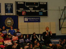 There’s little doubt that Obama is the candidate with the big ‘mo. Half an hour before his event was due to start here at Nashua North High School there was a mile and a half long queue of cars trying to get into the car park. The event eventually started an hour late once the campaign had set up an overflow room. There must have been at least a couple of thousand people there and encouragingly for Obama at least a quarter of them were undecided voters. If you’re Hillary Clinton, or John McCain who is competing with Obama for the votes of independents in the state, this has got to worry you.