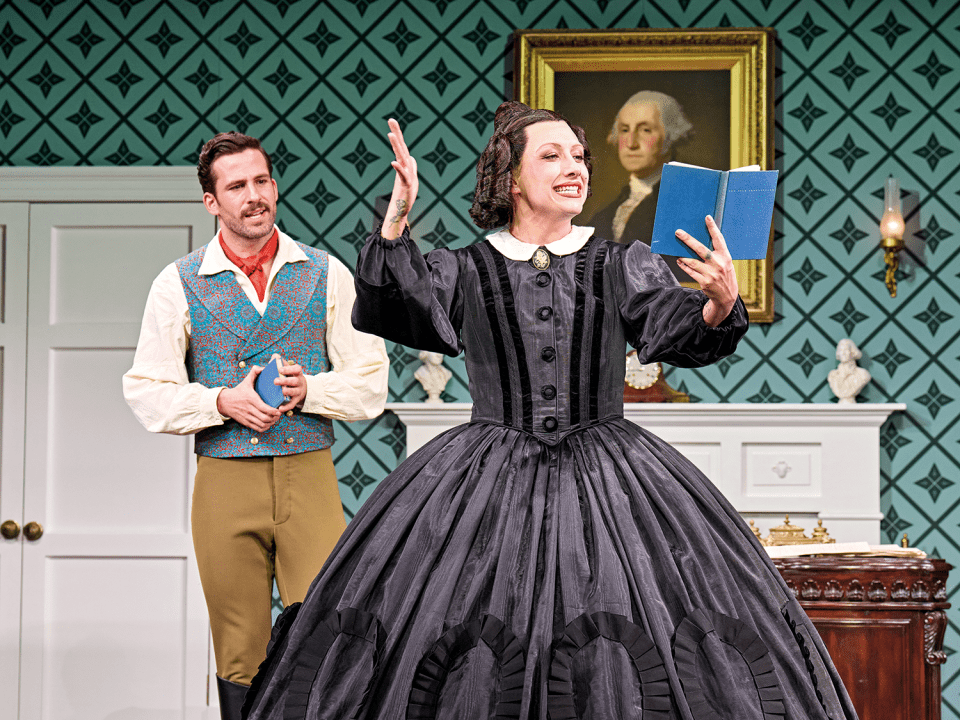 Dino Fetscher (Mary’s teacher) and Mason Alexander Park (Mary Todd Lincoln) in Oh, Mary! MANUEL HARLAN