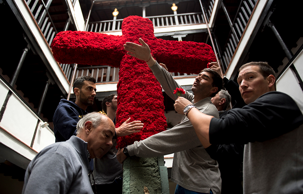 I’ve since done a little elementary research into this, but cannot say I’m much the wiser as to its meaning. After Easter, it seems that in Andalusia, and particularly in the Granada region, 3 May marks what’s called the Festival of the Cross; and during the preceding weekend mobile crosses are made, lavishly decorated, and carried around the towns on their plinths, the culmination being the festival itself. The cross proceeding beneath my window was one we had seen stationary in Guadix’s main plaza, with many gathered around while a band played. Now (I suppose) it was being walked through the town to reach a wider audience. Apparently it makes numerous appearances, quickening the drumbeat of religious excitement (as it were), in the days leading up to the festival.