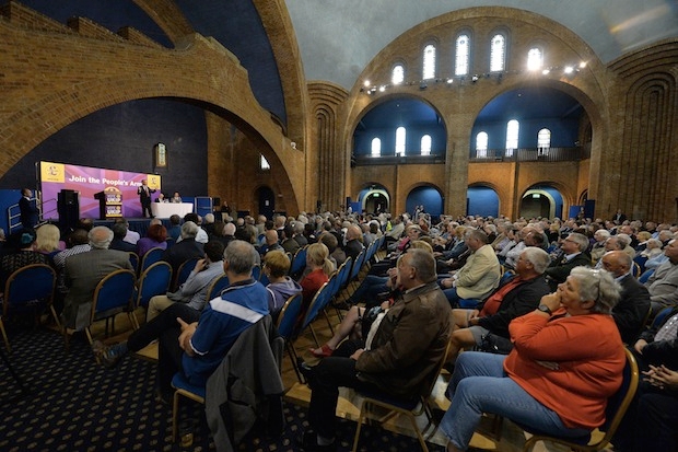 ‘After the European elections, we can smell blood,’ said a cheerful UKIP activist, Scott Cross, from Hampshire. Former Tory activist Steve Stanbury, who defected to UKIP a few years ago, felt ‘exhilarated and invigorated for the first time in ages.’ And this exuberance was given full vent when their saviour Farage appeared. Entering the packed 500-plus crowd in Newark’s genteel Kelham Hall, the ovation was standing and the roar was deafening. The grand Victorian hall is usually used for weddings, but marital celebrations had nothing on the enthusiastic applause from UKIP’s blue rinse brigade yesterday, still buzzing from their triumph in the EU elections a week earlier.