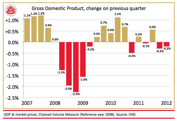 There are some caveats, of course. This is only a preliminary estimate, so the Office for National Statistics could revise it upwards at some point. It’s also the slightest of slight downturns. But there isn’t the sort of caveat that George Osborne might have wanted: there are no special reasons for this, such as snow or riots or fuel protests. Unless you count the eurocrisis, of course — which the Chancellor is bound to do.