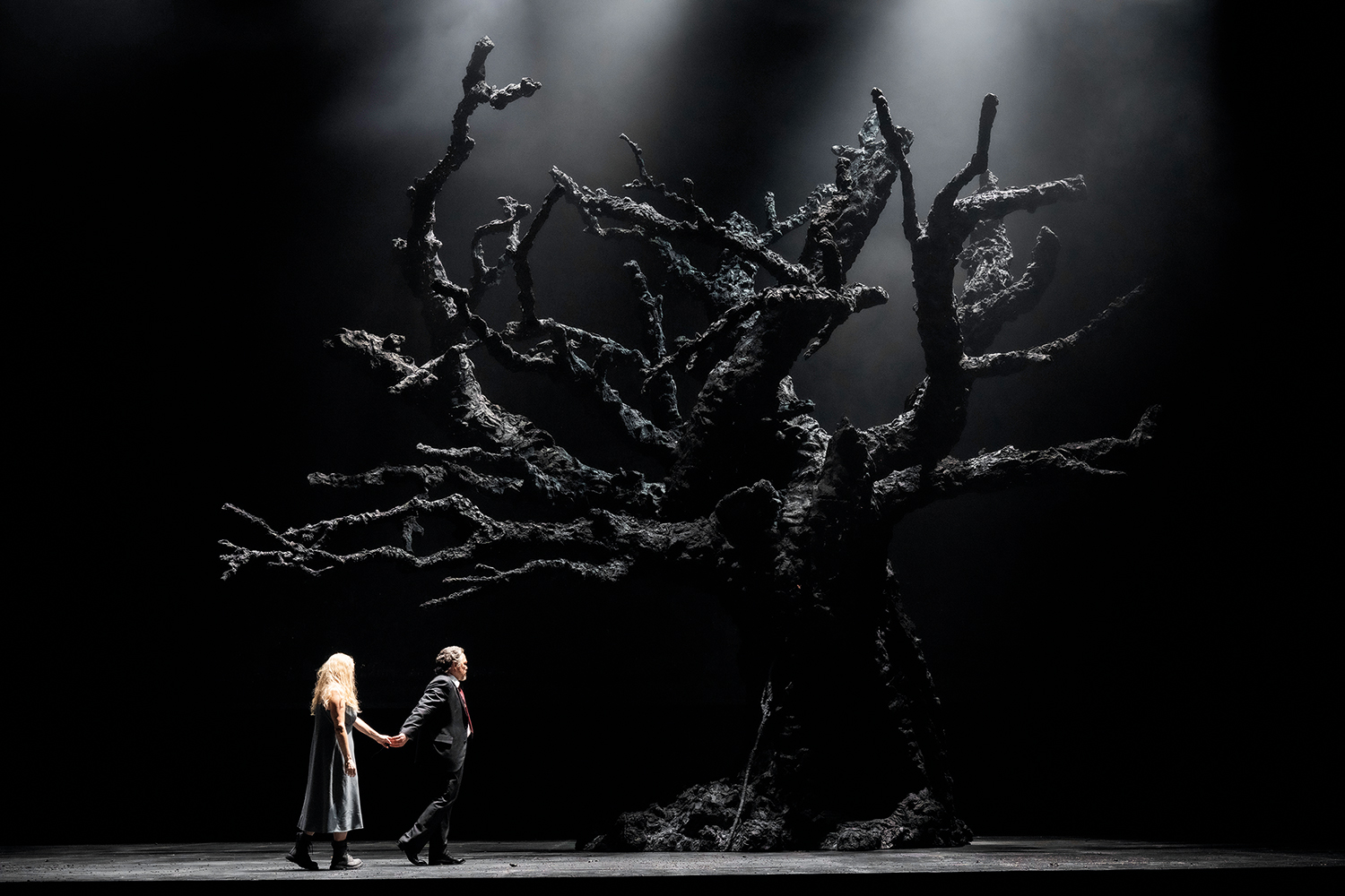 Various ex-trees recur in Rufus Didwiszus’s designs. The huge, maimed log from Das Rheingold reappears during Siegmund and Hunding’s duel, spewing blood as the betrayed hero falls and dies. The Valkyries gather not on a mountain peak but at a blasted, leafless tree beneath apocalyptic grey skies, and Wotan (Christopher Maltman) abandons Brünnhilde (Elisabet Strid) inside its hollow trunk. Branches aflame, it makes for a stupendous final image, and the surtitles even substitute ‘tree’ for ‘rock’, which is not what Wagner meant at all. Won’t the flames simply consume the tree? Ah, but it’s magic fire, remember.