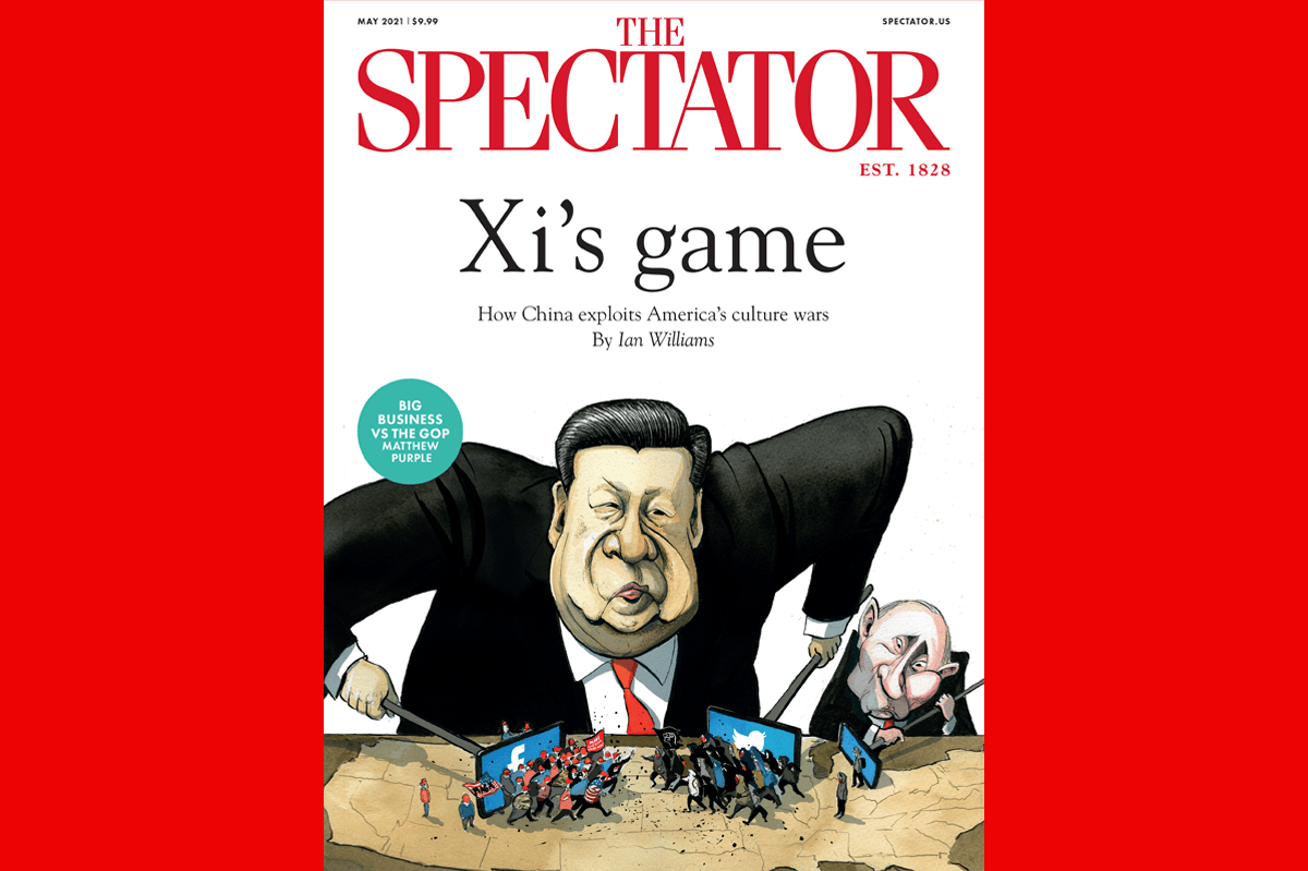It’s China’s game, and we are all pawns. In the new May 2021 edition of The Spectator, Ian Williams looks at how the Chinese government is using social media and misinformation warfare to stoke American political and racial tensions. Using troll accounts, some of them official, as well as its own social media channels, such as TikTok, Chinese propagandists can highlight divisive issues in America while distracting attention from their own country’s myriad human rights abuses. In this, the Chinese Communist party has been far more effective that Vladimir Putin’s Russia in causing disillusionment and despair in 21st century America.