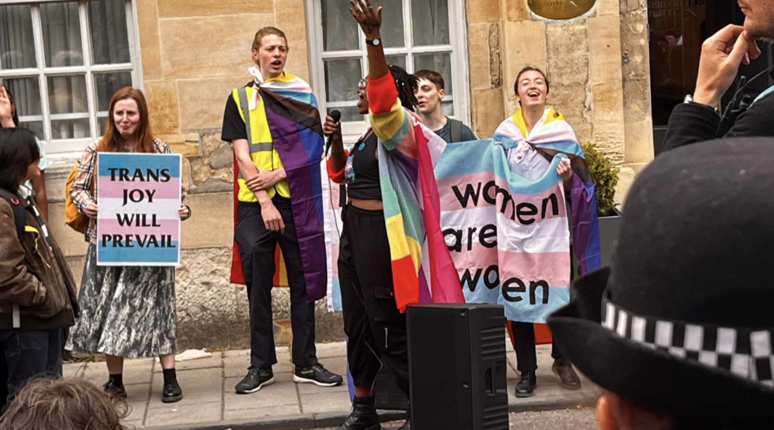 Oh dear. It seems the dreaming spires are having a nightmare. Professor Kathleen Stock is addressing the Oxford Union tonight, but not all students approve. One trans activist, Riz Possnett, glued themselves to the floor of the Union in protest before Stock even began speaking.