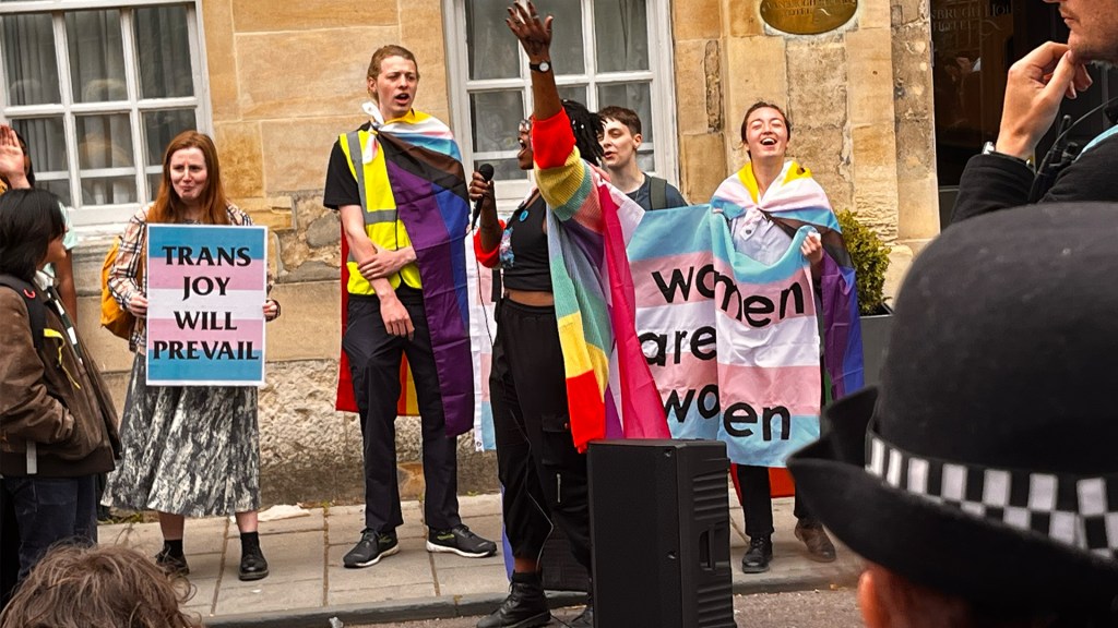 Outside, hundreds of trans activists reportedly began a march on the, chanting ‘cut your system, fuck your hate, we are not open for debate.’ With logic like that, who is Mr S to disagree?