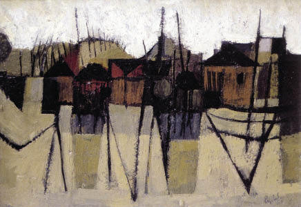 Reynolds’s first one-man exhibition was at the Redfern Gallery in 1952 while he was still a student, and his distinctive silhouetted style, in which dark linear forms stand out against luminous backgrounds, caught on at once. He says his early success was embarrassing, though the financial rewards were welcome.